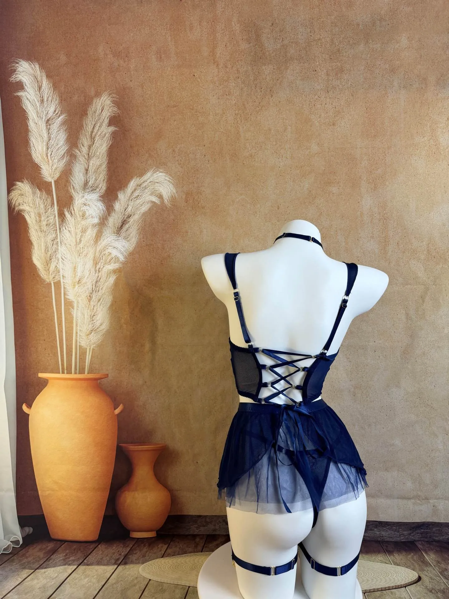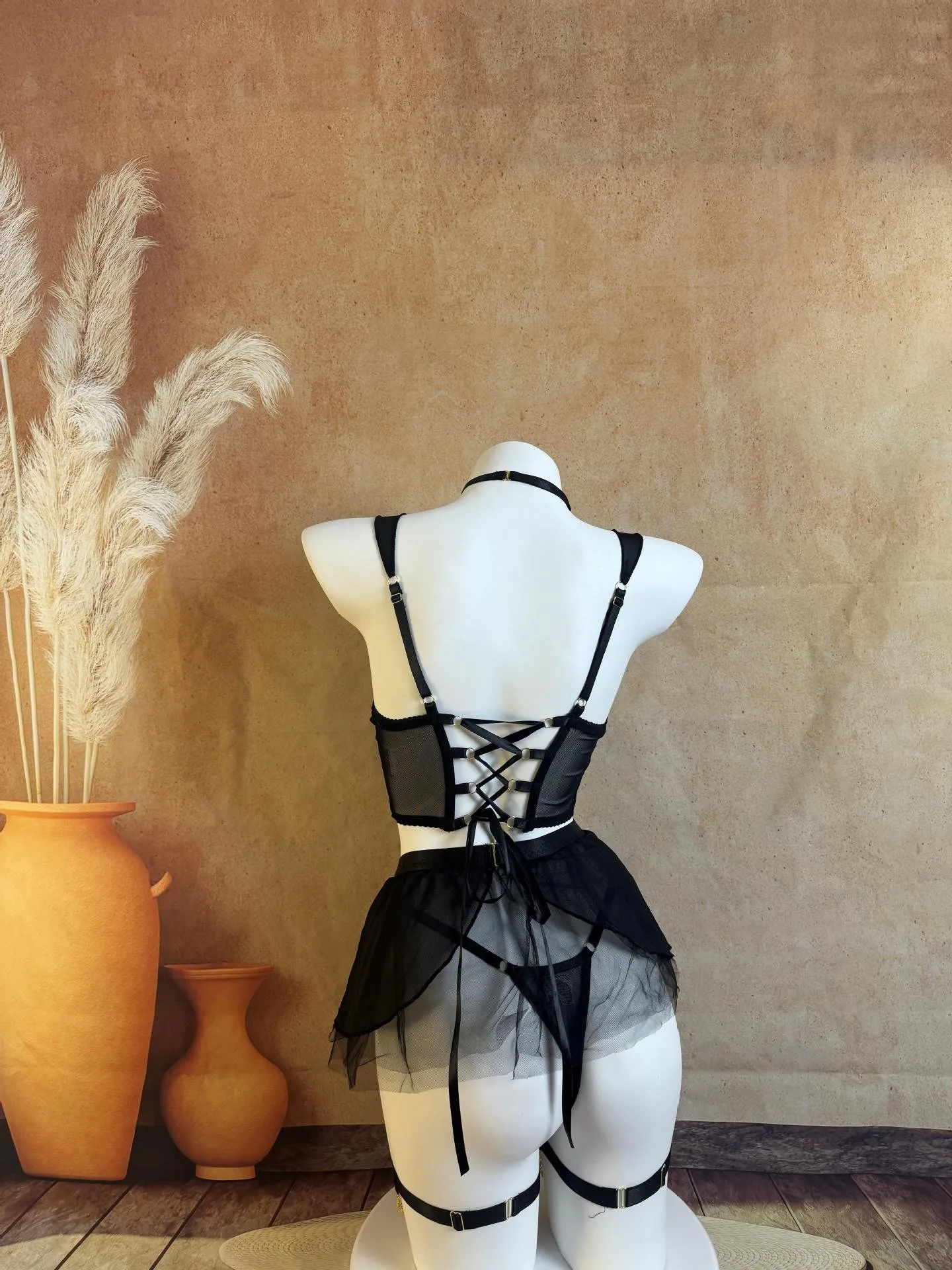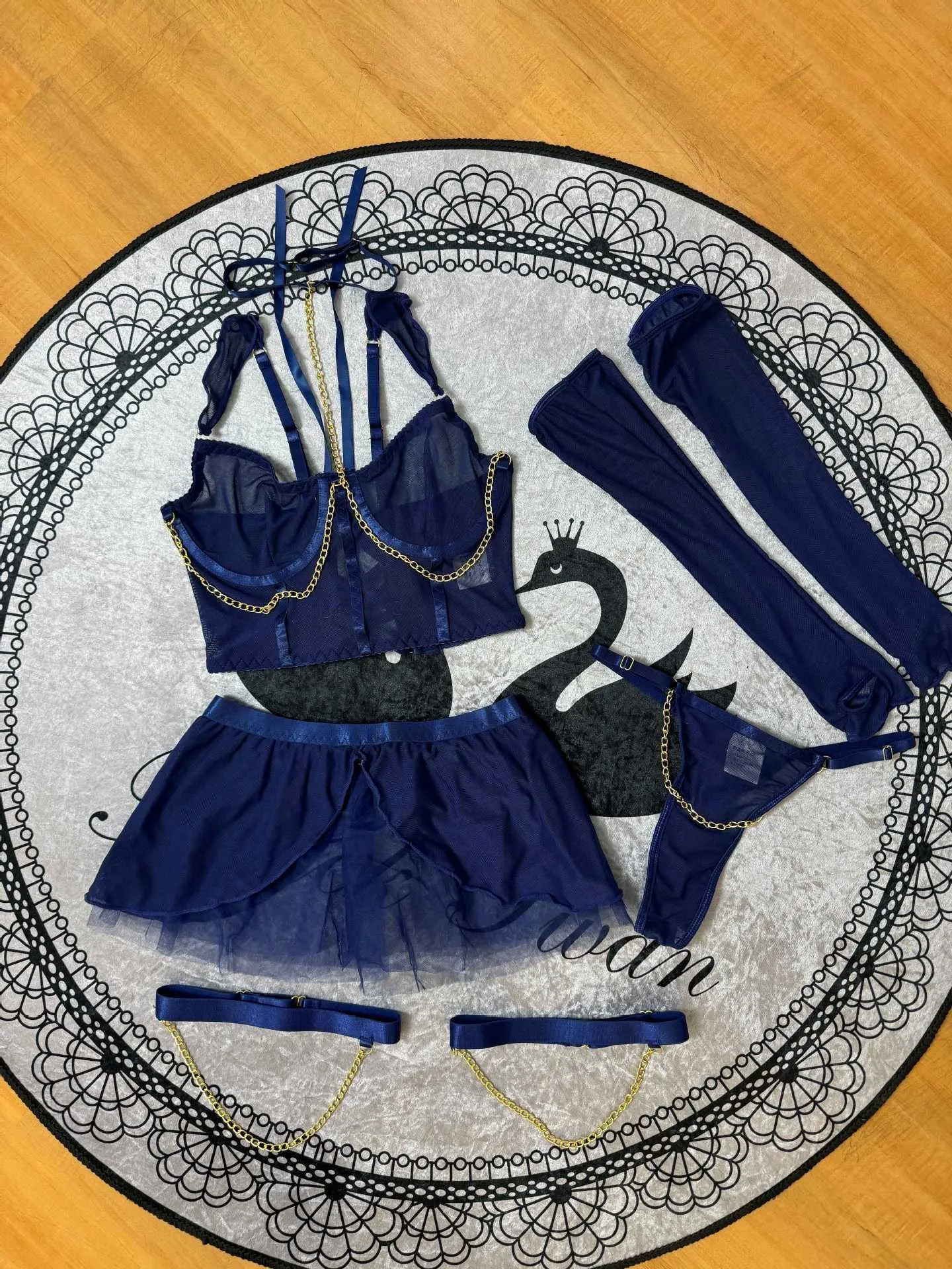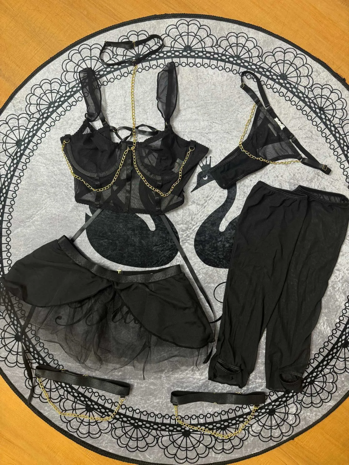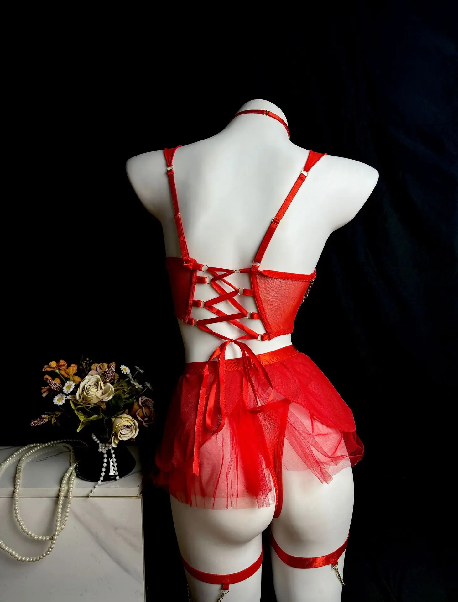 Be the first to review “Fairy Women Lingerie Set Sexy Hot Erotic Tulle 5PCS Outfit with Attractive Chest Suspenders Chains Cuffs Back Bandage”