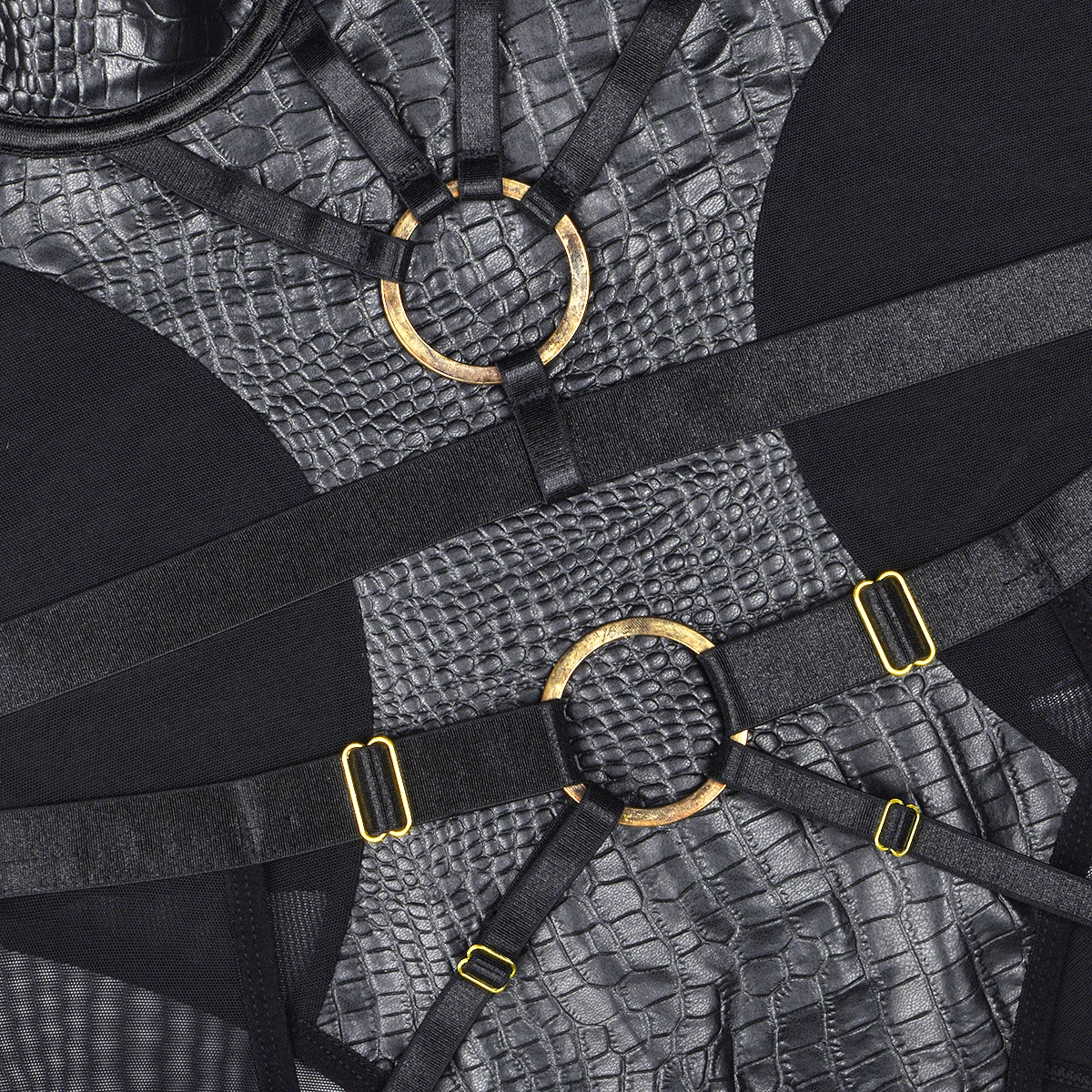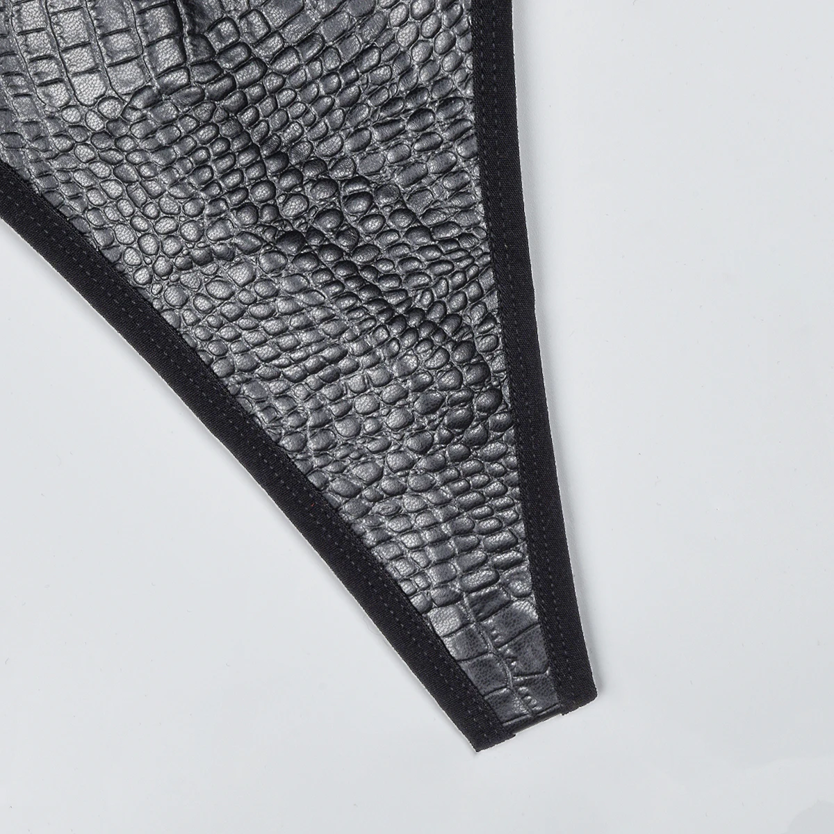 Premium Latex Sexy Female Lingerie Luxury Crocodile Leather Bodysuit Call Of The Night Detachable Thong Women