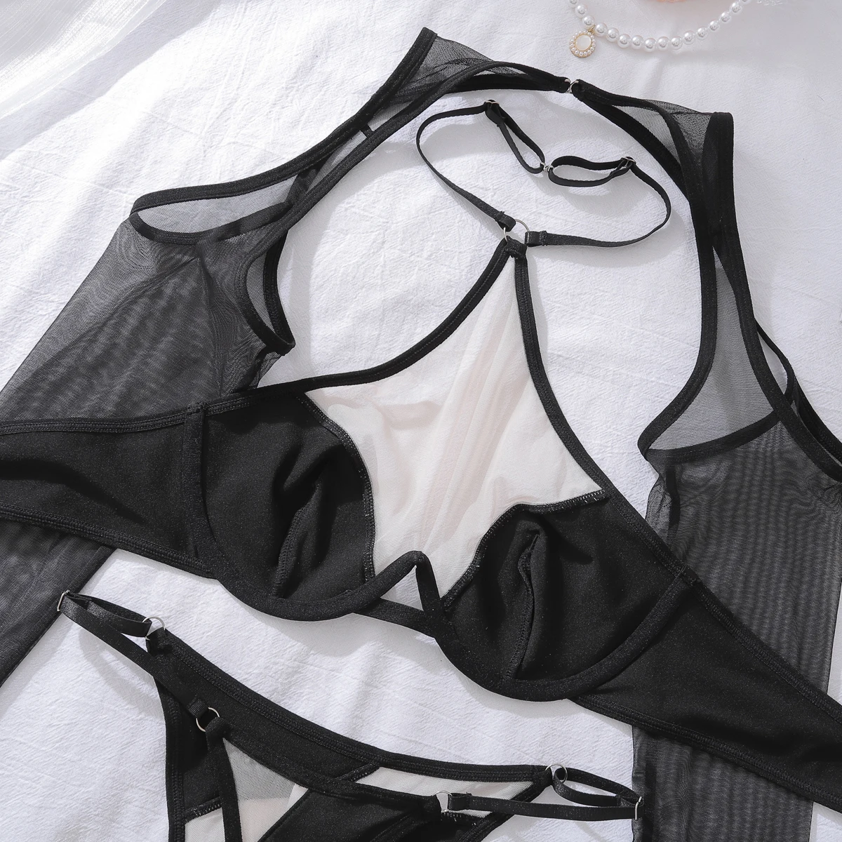 Ultra Sexy Lingerie With Sleeve Halter Bra Tulle Underwear Ensemble Natural Clothes Female Skinny Underwear Lingeries